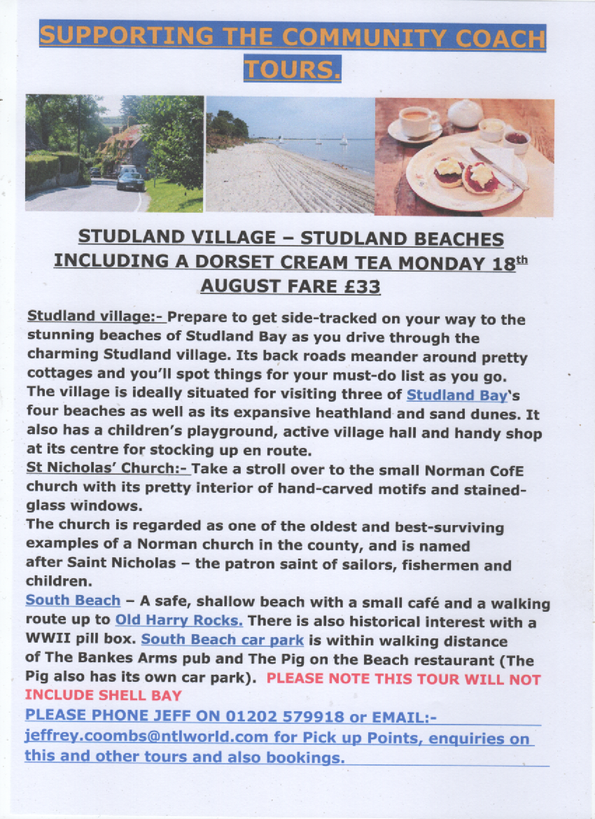 Previous image Next image STUDLAND VILLAGE – STUDLAND BEACHES INCLUDING A DORSET CREAM TEA MONDAY 18th AUGUST FARE £33